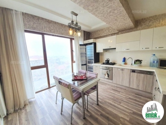 Сдается великолепная 3- х комнатная квартира с панорамными видом на город, расположенная на 12-ом этаже современного элитного жилого комплекса “Yeni Hayat - Azure Park” напротив торгово-развлекательного центра “Megafun”. Хатаинский район, рядом с метро «Хатаи». Этаж 12/21. Общая площадь 120 кв.м., 1 открытый балкон. 2 с/у. Отличный ремонт. Раздельные комнаты. Пол (паркет). Новая гостиная и спальная мебель. КТВ, интернет-wifi. Современные инженерные системы (центральное кондиционирование, теплый пол, 3 сплит-кондиционера, индивидуальный тепловой пункт, система пожаротушения). Просторная встроенная кухня с бытовой техникой. Высокоскоростные лифты. Подземный паркинг, кладовые комнаты, круглосуточная охрана и консьерж-сервис, благоустроенная территория, Коммуникации 24 часа. В комплексе предусмотрен автопарк, рассчитанный на 2000 автомобилей.