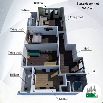 Nərimanov rayonu Ələşrəf Əlizadə ( Təbriz / Çapayev ) küçəsi, 177 nömrəli məktəbin yanında, Şərq - Yaşıl bazarın yaxınlığında " Qaya Qala " premium yaşayış kompleksi tərəfindən " Palmali " binanın yanında tikilən 17 ( mansard ) mərtəbəli binanın 16 - cı mərtəbəsində DƏNİZ panoramalı 94,2 м² qanuni 3 otaqlı TƏMİRLİ mənzil satılır. Mənzilə 2 yataq, 1 qonaq otaqı, 1 mətbəx, 1 sanitar qovşağı, 3 balkon, 5 pəncərə daxildir.