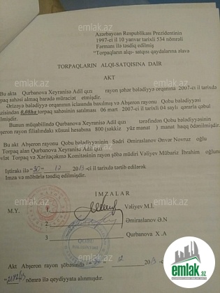 Şüvelanda çox prestijli bir yerde , \" Şüvelan Park Mc Donald \'s \"- dan sola , Şüvelan deniz yolu , Denize gedende yolun saginda , \" Şüvelan Villas\" yaşayış kompleksi ile üzbeüz mehellede , yoldan texminen 100 metre ...