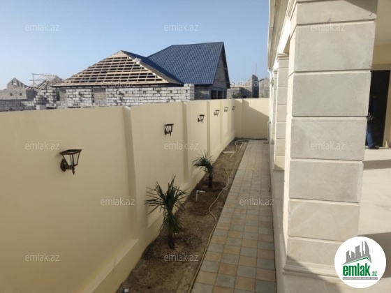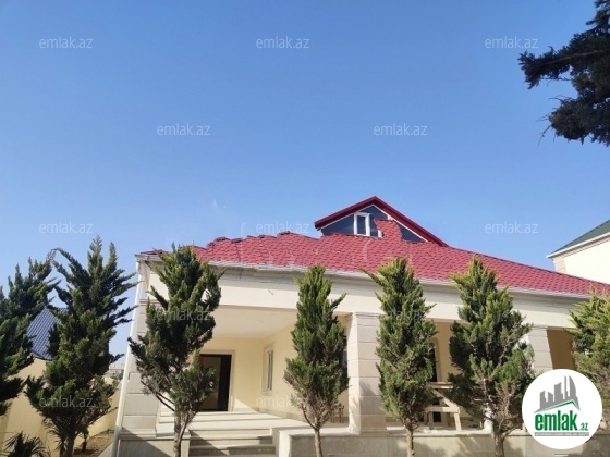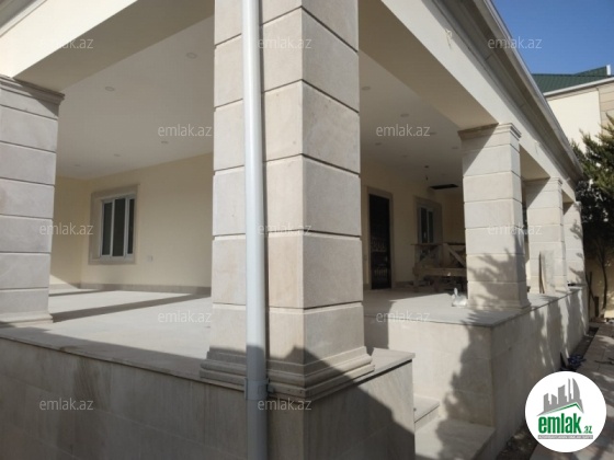Mərdəkan qəs (Makaron fabriknin yaxinliginda) .Geniş kürsülü ev 6 sot həyət 200m2 ev boyük eyvanlar, 2 sanitar qovşağı 4 otaq İşıq,su,qaz var bütün sənədlər qaydasındadır.Texniki pasport kupça