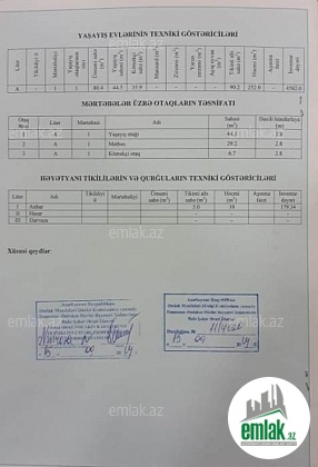 --- Bag evinin sahəsi 2 sotdur.Tikili zal studya olmaqla 3 otaqdır. Yaşayəş sahəsi 90 kv m2-dir.