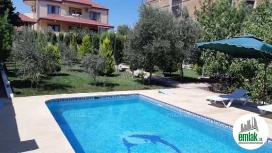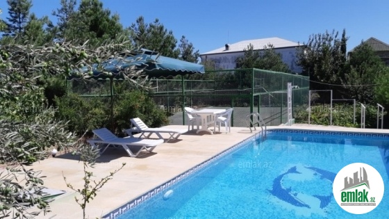 Bilgah,denize 600metr,2mertebe ve mansarda,1zal ve 5yataq otaqi,basseyn filtrle,3 dene hamam ve tualet,split kond.,kombi,manqal.bak,besedka,tennis kortu,yashil aqaclar.Su ishiq qaz daimi.Yay aylarina sezona verilir.