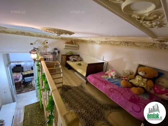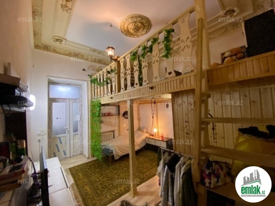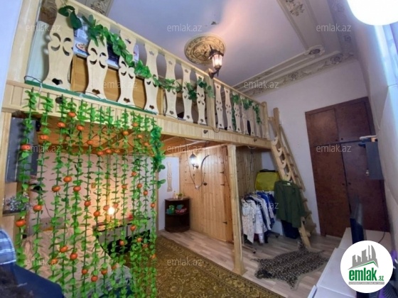 Merkezde,Sahil baginin yani,temirli,girish blokdan,otaqlar ich-iche ve ayri,balkon baga baxir,heyete verandadan chixish var,otaqin birinde antresol tikilib,metbex studiya,pol parket uzerinde laminat.