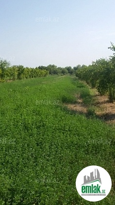 1 ha 4 bir yanı bağlı bağdi. içinde 600 meyvə ağacları var. Ağaclar bir nece il bundan öncə əkilib. Bağ bütövlükdə yonca otudu. Bağ kəndir baş yolundan 200 metr içəridədir. Suvarılması çox asandı. Bütün sənədləri qaydasındadır.