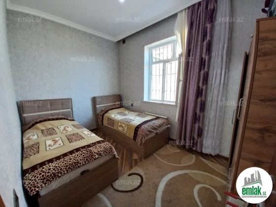 Ev 3 sot heyetin icinde genis koridor 1 zal 2 yatag 1 usag 1metbex 2 hamam tualetden ibaret qaz isig su daimi kombi su ceni hamisi var.metbex hamam koridor istipoldur.evin temeli M400 zavod betonuyla betonlanib kursuye qeder tikilib ici doldurulub ve styaska olub.evde nem qetiyyen yoxdur.makler deyilem evde herseyin keyfiyetlisin istifade etmisem padakolnike kimi mermerden qoydurmusam.gelib baxanda bileceysizki bu evde ucuz hecne istifade olunmuyub.heyet 12x25 ev 12 x 10.butun saygaclarida qoymusam qanunsuz hecne yoxdu