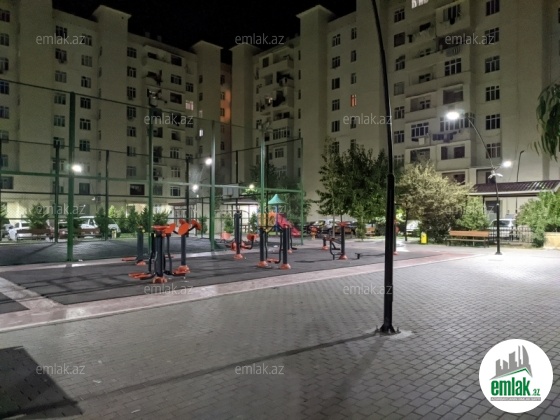 Bina ərazisi yeni təmir təmir olunub, evin qabağında parking, futbol meydanı və uşaqlar üçün əyləncə meydanı var.