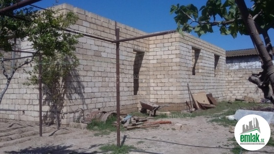 1 ədəd yarım tikili, hörgüsü tamamlanmış 4 otaqlı ev var.