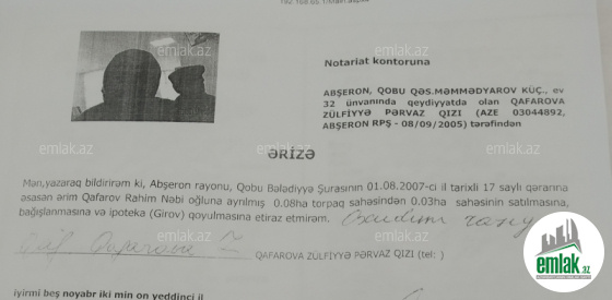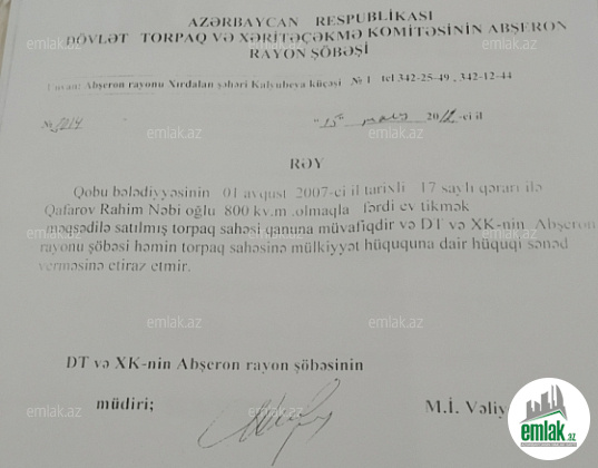 Abşeron rayonu Qobu qəsəbəsində 3 sot torpaq sahesi satılır. 1 sotun qiyməti 1600 azn