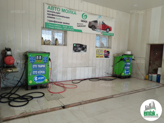 Hazır işləyən 3 bokslu avtoyuma məntəqəsi. Özünə xidmətdir. Avadanlıqlar Türkiyədən gətirilib tam saz vəziyyətdədir.Biznes daxil satıla bilər. İkinci mərtəbəni kim alsa qaldıra bilər. Memarliqdan layihəsi təsdiqlənib. Satış notarial qaydada rəsmi olacaq. İsdəyən təyinatı dəyişib öz biznesini qura bilər.(Aptek, mebel, geyim mağazası və s). Ciddi şəxslərlə qiymətdə razılaşmaq olar.