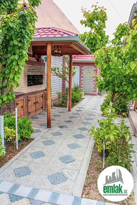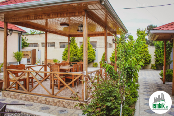 Həyətində manqalxana,sanuzel qovşağı, isti-soyuq su, besedkası,kladovkası və yay mətbəxi var.