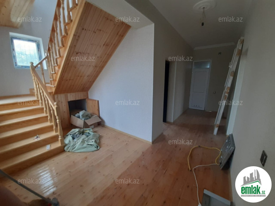 3 mərtəbə. Qaz, İşiq, su, kanalizasiya xətti, Kombi, internet var. Qoşa daşla tikilib. 1-ci mərtəbə qaraj, hovuz, 2 ədəd təmirsiz otaq. 2-ci mərtəbədə geniş zal, mətbəx, yataq otagı, sanuzel. 3-cü mərtəbədə 4 otaq sanuze...