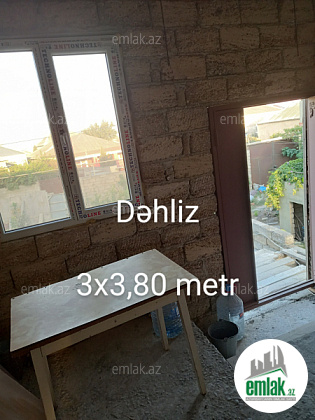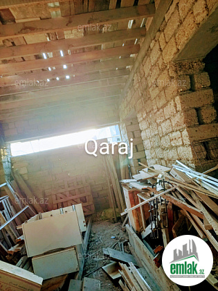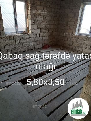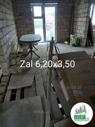 3 sotda birinci mərtəbədə 1 zal, 2 yataq otağı, 1 mətbəx, 1 qarajdan və ikinci mərtəbədə 1 zal, 1 mətbəx, 3 yataq otağından ibarət yarı tikilidir, otaqlarının içinin kvadratlarının cəmi 160,62 m²-dir. lazım olsa 20000-25000 manat bahasına hər bir şəraitinə, həyət darvazası, qaraja avtomat qapısına, birinci mərtəbəyə isti poluna kimi düzəltmək olar. Evin içində hamam tualetin yeri və darvazanın yerində qalan bütün daş işləri onsuz da görüləcək. Məktəbə, mağazalara yaxın yerdədir. 7 mərtəbənin dayanacağından uzağı 3-4 dəqiqəlik yoldur. Zapravkanı keçəndən sonra sağ tərəfdə yolun kənarındakı Hövsan ət dükanından 50 metr arxada yerləşir. Məhəlləyə darvazanın qarşısı da daxil olmaqla təzə asfalt çəkilib, həyətə də işıq şotçiki qoyulub. Gəlib görsəz çox münasib yerdədir. Ev öz evimdir. Çox keyfiyyətli tikilib, qiymətdə necə lazımdır razılaşmaq olar. Məsələn qazı çəkdirmək və evin içinin işıq naqillərin çəkmək olar, darvazanın yerində və evin içində hamam tualetin yerində qalan daş işləri onsuz da görüləcək, başqa pilləkanı da düzəldərəm. Həyətin iki tərəfi də yoldur, evin iki giriş-çıxışı var, birinci mərtəbənin yolu arxa tərəfdən qarajdan və qabaqdan həyətdən, ikinci mərtəbənin yolu isə həyətdən, qabaq tərəfdən pilləkəndəndir. Birinci mərtəbəyə və qarajdan evə giriş üçün 2 dənə möhkəm dəmir qapı da var.