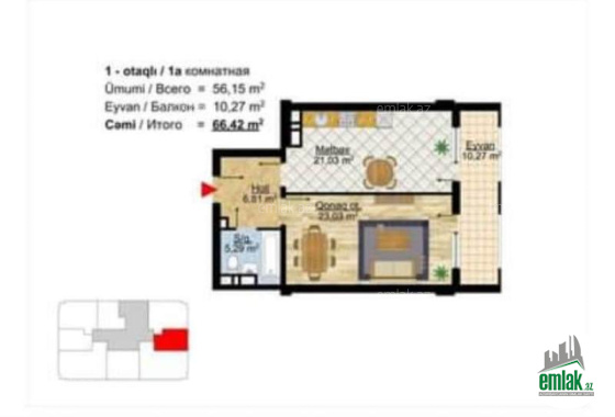 Ümumi sahə: 35 kvm