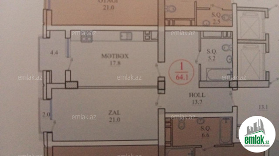 64 kv , 1 otaqlı, təmirsiz mənzil satılır.