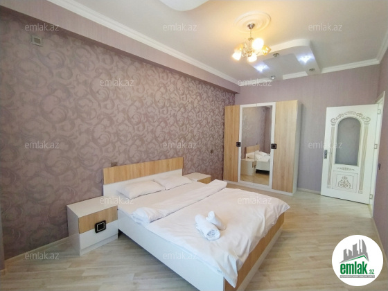 Посуточно! Новостройка. 2-x комнатная,19/11 этаже 95кв.,в центре города, около метро 28 Мая, евро ремонт, встроенная кухонная мебель, мягкая мебель+ 1 двух-спальные кровать, посуда, чистое постельное белье, горячая и холодная вода, газ, TV (кабельное TV), 2 кондиционера ,микроволновая печь. Также быстрый Интернет WI-FI, стиральная и посудомоечная машина, dvd, стерео, вся обстановка для комфортного проживания. Оплата: 40-70 ман.