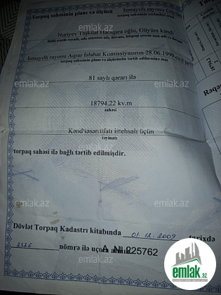 Salam tecili satilir. torpaq Ismayıllı rayonunda alma bagi deyilen yerde yerlewir 200 sotdu .wekilde gorduynuz yerdi iki bawindada su var bir terefinde yeri suvarmaq ucun bir terefinde icmeli sudu yola ve rayona yaxin yerdi .Senetleri var