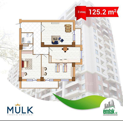 Sumqayıt şəhərinin tam mərkəzində Heydər Əliyev prospekti 19 ci məhəllədə TURAN MTK a məxsus analoqu olmayan 4 bloklu 16 mərtəbəli MÜLK yaşayış kompleksində 8ci mərtəbədə sahəsi 125.2 kvadrat 3 otaqlı təmirli mənzil satılır. Sənəd:Kupça Şəhərin tam mərkəzində yerləşməsi Bütün Ərazinin işıqlandırılması Kabel və Peyk telekanallarına çıxış Yüksək sürətli internet Müasir standartlara uyğun sürətli liftlər Zəlzələyə davamlılıq Mühafizə sistemi(24 saat kamera müşahidəsi) Yeraltı avto dayanacaq Binaya məxsus su anbarı Yanğından mühafizə sistemi Binaya məxsus tam təchizatlı generatorlar Domofon sistemi Seyf qapılar Qaz ve su ,isiq daimidir Yaxınlıqda məktəb, avtobus dayanacağı , market mövcuddur. Mətbah Mebili daxildi . Otaqlar ayridir,S/Q ayridir.Menzil yelcekendi(Skvoznoy)..kombi sistemi . Qiymet 145.000