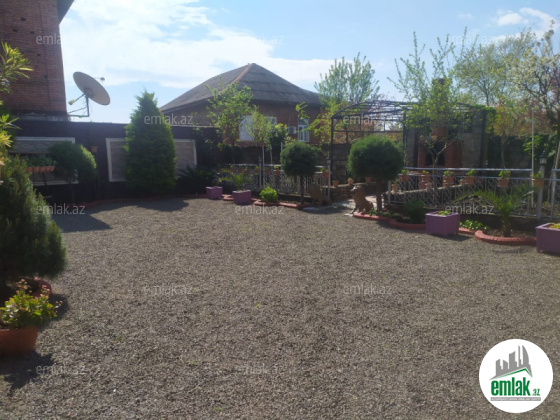 İki mərtəbəli, hər şəraiti olan evdir. Həyətində hamam, tualet, qaraj, su çəni və quyusu, manqal, dekorativ və meyvə ağacları var, Birinci mərtəbədə 3 otaq var. İkinci mərtəbədə 4 otaq, 1 zal, mətbəx, açıq balkon, hamam otağı var. Daimi qaz, işıq, su var, İstilik sistemi mərkəzidir. 500 marka körpü sementi ilə tikilib. Real alıcı ilə qiymətdə razılaşmaq olacaq.