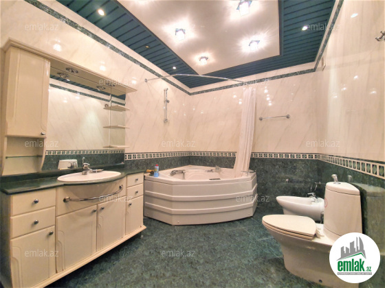 Cдается 5-и комнатная квартира в центре города, в Насиминском районе, по улице С.Вургуна, за Турецким посольством, в престижном комплексе «Глобал Иншаат». Этаж 10/15. Общая площадь 300 кв.м. 3 санузла в отличном состоянии, душевая кабина. Отличный ремонт. Раздельные комнаты. Полы паркетные. КАТВ, стиральная и посудомоечная машины, отопительная система «комби», плазменный телевизор, 5 сплит кондиционеров. Качественная кухня со всей бытовой техникой в наличии. Коммуникации 24/24. Охраняемый двор, кодовый блок, место для парковки, подземный гараж, детская площадка.