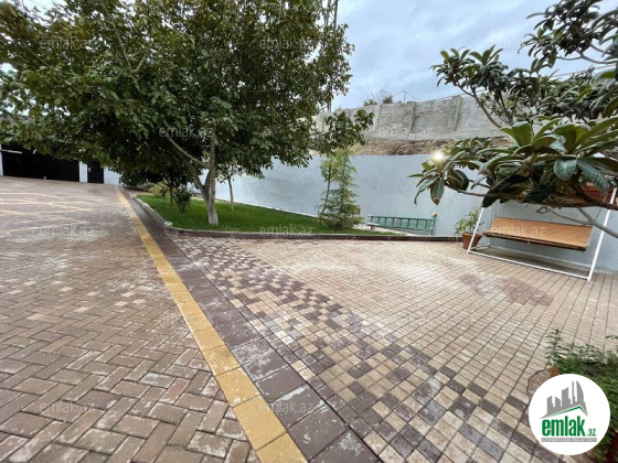 - Həyətin torpaq sahələri qazon olmaqla yanaşı 40-a yaxın bar verən meyvə və böyük dekorativ ağacları var;