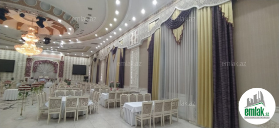 Babək prospekti, Tam yol kənarında, ərazisi 67 sot, tikili sahəsi 8000 kv.m, 4 ədəd möhtəşəm Zaldan ibarət RESTORAN-Şadlıq sarayı əşyalarla birlikdə satılır.Sənəd-kupça ( torpaq və tikili xüsusi mülkiyyət.).