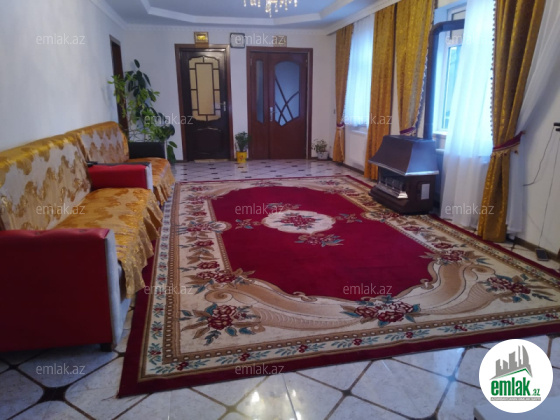 Qəbələnd əyləncə mərkəzinin 1 km-də asfalt yolun kənarında,daimi qazı,suyu,işığı,telefon və interneti var.Həyətdə kürsülü 3 otaq,1 zal,mətbəx, sanuzel,kombi isitmə sistemi olan ev var.Otaqlar,zal,mətbəx çox genişdir.18m uzunluğunda 5m enində,içərisində yay kuxnası olan,yeri metlaxlanmış quraqlıq var.ev təmirlidir.Yaşayış üçün tam yararlıdır.Həyət 14 sotdur.İçərisində meyvə ağacları var.Dörd bir tərəfi hasardır.Evdə hal-hazırda yaşayış var.