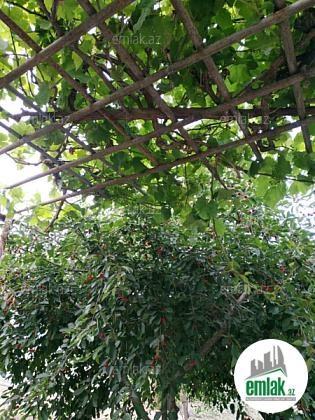 15 sot yarim,4 terefi zabor,sanitar qovsagi. Heyetde 1 otaq 40 kv ev.Qaz,su,isiq daimidi 24 saat. yolu asfalt,yeke darvaza. heyetde 100 e yaxin meyve agaclari .Agaclarin arasinda bisetka kababni yeri,tovlesi.Ev kimi yox,torpaq kimi satiram. senedlerde BT texniki pasportu. kupcaya 1 etap qalib.Belediyye fiktivni cixarisi deyil.Heyetden Ehmedli metrosuna piyada 5 deqiqe yoldur.