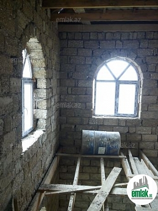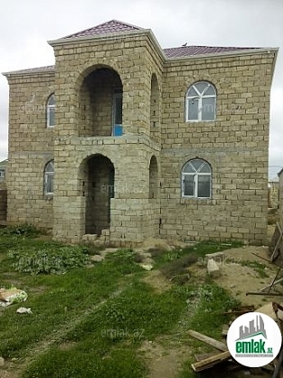 4 sotun içində tikilmiş 2 mərtəbəli evdir. möhkem betondan olan bünövreye malik. qaz işıq su var . 2 yuxaridaki otaqin döşemesi ve tavani vurulub pod mayak . 1 otaqda tavani vurulub.. 3 terefden hasarı var. Bələdiyyə sənədi ilə .Qiyməti razılaşma yolu ilə...