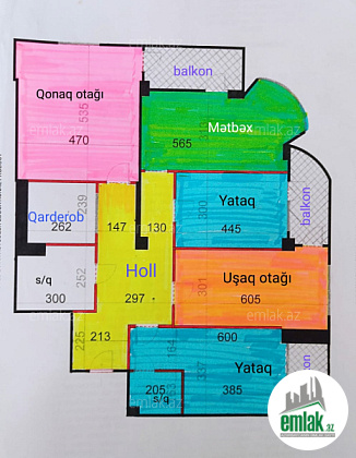 - 4 qanuni otaq, 2 balkon, 2 sanuzel.