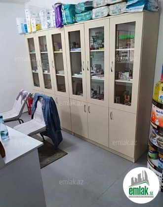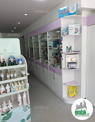İnşaatçılar metrosu yaxınlığında hazır biznes satılır.Obyekt aptek olaraq fəaliyyət göstərir.Sahəsi 132 kv/m-dir.Aptek həm hazır biznes kimi satılır,həm də aylıq icarəyə verilir.Biznes kimi 25 000 azn satılır,icarəsi isə aylıq 1300 azn-dir.Hazırda işlək və müştəriləri olan yerdir.Alan və ya icarə götürən şəxsə sadəcə işlətmək qalır,hazır obyektdir.Aptekdən yalnız dərmanlar götürüləcək,qalan hər şey qalacaq.Əlavə olaraq aptekin içərisində hər bir şəraiti olan kosmetoloq otağı fəaliyyət göstərir.Kosmetoloq yalnız istifadə etdiyi materialları özü alır,işləmək üçün qalan hər şey var.Aylıq 150-300 azn gəliri var.Qazanc 40-ın 60%-ə bölünür(60% kosmetoloqa qalır).Obyektin müdür otağı,mətbəxi və sanuzeli var.Tam şəraitli obyektdir.