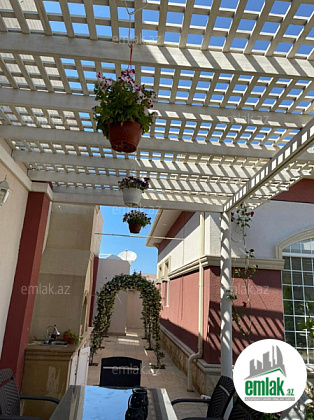 Açıq eyvanı var.Baseyn,manqal,terast cam balkon.Mətbəx mebeli daxil.