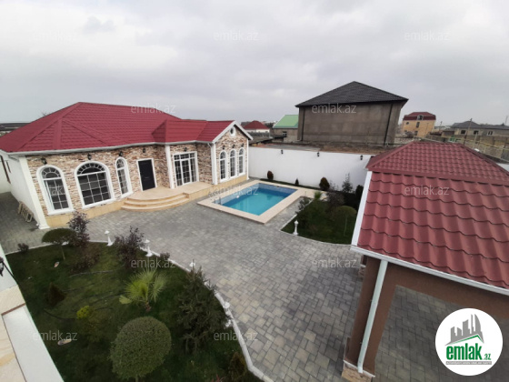 Salam hər vaxtınız xeyir sizə Şüvəlanda 3 sotda ümumi sahəsi 140 kv olan 1 mərtəbə 4 otaq 2 sanuzelli bağ evini təklif edirik, ev bütünlükdə isti döşəmədir və mətbəx mebeli ilə təmin olunub, həyətində filterli hovuzu pul...