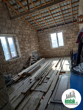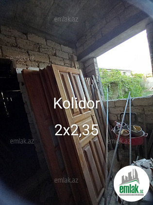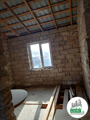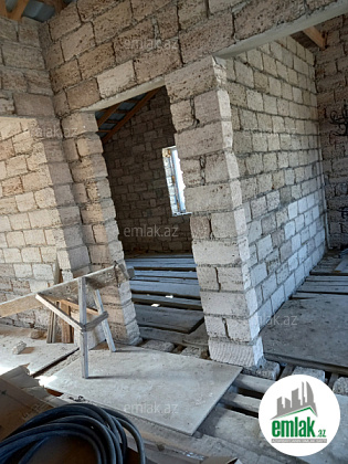 3 sotda birinci mərtəbədə 1 zal, 2 yataq otağı, 1 mətbəx, 1 qarajdan və ikinci mərtəbədə 1 zal, 1 mətbəx, 3 yataq otağından ibarət yarı tikilidir, otaqlarının təmiz içinin kvadratlarının cəmi 161 m²-dir. Hər mərtəbədə ayrı sanitar qovşağı var. Lazım olsa 15000-20000 manat bahasına hər bir şəraitinə, həyət darvazası, qaraja avtomat qapısına, birinci mərtəbəyə isti poluna kimi düzəltmək olar. Məktəbə, baxçaya, mağazalara yaxın yerdədir. 7 mərtəbənin dayanacağından uzağı 3-4 dəqiqəlik yoldur. Maşın yolu zapravkadan aşağı düşürsən, əsas yoldan 50 metr məsafədə yerləşir. Məhəlləyə darvazanın qarşısı da daxil olmaqla təzə asfalt çəkilib, həyətə də işıq şotçiki qoyulub. İşığa aid olan bütün naqil (standart 4-lük və 2,5-lik) və avadanlıqları hər şeyi yaxşılarından almışam. Gəlib görsəz çox münasib yerdədir. Ev öz evimdir. Çox keyfiyyətli tikilib. Qazı çəkdirib və evin içinin işıq işlərin də gördürüb təhvil verərəm. Darvazanın yerində və evin içində qalan daş işləri onsuz da görüləcək. Həyətin iki tərəfi də yoldur, evin iki giriş-çıxışı var, birinci mərtəbənin yolu arxa tərəfdən qarajdan və qabaqdan həyətdən, ikinci mərtəbənin yolu isə həyətdən, qabaq tərəfdən pilləkəndəndir. Birinci mərtəbədən evə giriş üçün möhkəm dəmir qapı da var. Bu evdə rahat iki ailə də qala bilər. Hətta həyəti yarıya bölüb darvazası tamam ayrı bir dənə də ev tikmək olar