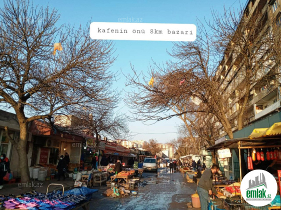 Bakı şəhəri, Nizami rayonu, C.Naxçıvanski küçəsində, 8-ci km. Bazarının yanında, 9 mərtəbəli binanın yarımzirzəmisində ümumi sahəsi 54kv/m olan (əlavə içəridən 60kv/m qədər artırmaq mümkündür) obyekt əşyaları ilə birgə satılır. Obyekt 1 zaldan, 1 kabinetdən, mətbəxdən, çöldə kabab bişirmək üçün manqalxanadan (lazım gəlsə manqalxanada, qutab, peraşki, dönərçi yeri kimi əlavə yer açmaq olar) və yayda oturmaq üçün 10 stolluq yerdən ibarətdir. Obyektin kupçasi var (qeyri yasayis). Obyekt gəliş-gedişin gur yerində düz bazarın yanında, yaşayiş binalarnın əhatəsində cox işlək yerdə yerləşir, obyektin parkovkasi var, bazar 24 saat işləyir. Obyekt market, aptek, gozəllik salonu digər iş yeri kimidə işlətmək üçün əlverişli yerdədir. Obyekti 800 manata icarədədir. Əlavə məlumat almaq üçün göstərilən nömrəyə zəng vurun.