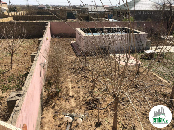 15sot torpaq ərazisində həyət damı və yaninda otaq,mansar tipli 43kv.m otaq,həyətdə 2 böyük hovuz,1 tam hazır vəziyyətdə tövlə və 1 tam hazır olmuyan tövlə vardır(üstü bağlanmalıdır).Torpağın sənədi vardır.15sot torpaq hasara alınıb.İşığı,suyu,qazı vardır.Denize yaxın ərazidədir.Yaşamaq üçün hər cür şəraiti vardır.Evdə qalacaq olan əşyalar: