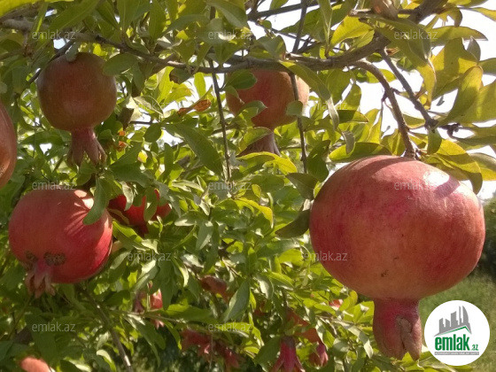 Göyçayın Qaraməryam kəndində yol qırağında ümumi sahəsi 2 hektardan çox olan torpaq sahəsində (4 pay torpaq, xüsusi mülkiyyət), təmiz 1.2 hektarı Nar bağı (500 ağac, vələs və güleyşə sörtları, digər sahəsində qarışıq meyvə ağacları (alma, armud, hibrid gavali, göycə, şişburun xurma, salxım qoz, badam, fındıq, üzüm və s.) olan bağ satılır. Əlavə genişləndirməyə yer var. Bağ tikanlı məhtil ilə etibarlı çəpərlənib. Müntəzəm aqrotexniki qulluq edilib. Bağın üst tərəfindən su kanalı keçdiyi üçün su təhcizatı qaydasındadır. Bağda əlavə bulaq var. Həm aşağı, həm də yuxarı hissəsindən maşın yolu mövcuddur. Nar ağacları 10-12 ilin ağaclarıdır. 2021-ci ildə 10 tondan artıq məhsul toplanıb. 2022-ci ilin payızında yüksək məhsuldarlıq gözlənilir. Bütün sənədləri qaydasındadır. Ətraflı məlumat üçün əlaqə saxlayın. Qiyməti razılaşma yolu ilə.