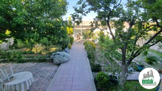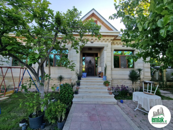 Şexsi tikilmis heyet evidir . Alt ust monalit betondur...7 otagdan ibaretdir . Orta temirli 6 sotun icinde.Otaglar genisdir. Evin icinde heyetin de hamam sanuzel var. Heyetde 10 t su baseyini var. Qaz su isig internet ...