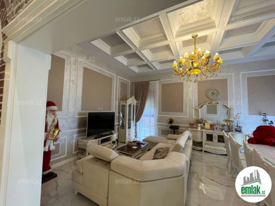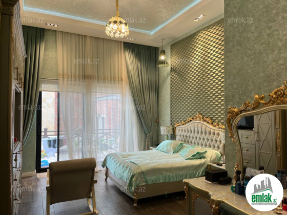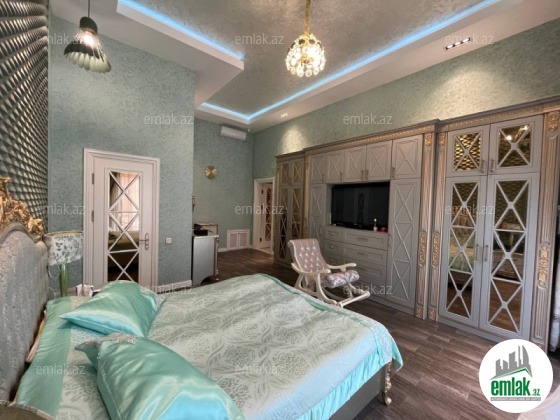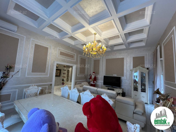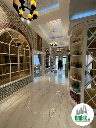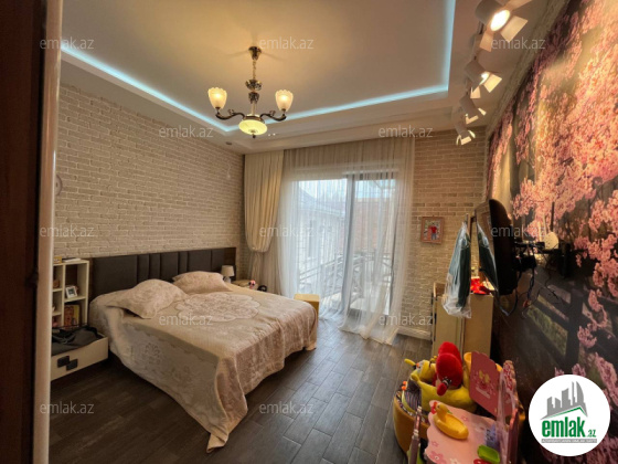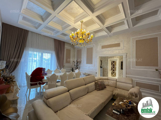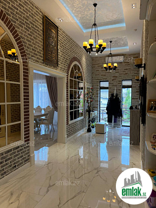 Daxili 3 yataq otağı, 1 qonaq otağı, geniş mətbəx, holl və 2 sanuzeldən ibarətdir. Ev yüksək zövq və keyfiyyətlə şəxsi istifadə üçün təmir olunub. Hündürlük 4.50 m .Pəncərələr Şebeşe Türkiyə firması.Pərdələr Capsella.Hamam aksesuarlari grohe ve avstiya istehsali olan aksesuarlardi moydadir ve diger hamam eshyalari hamsi ego brendidir.Ev bütünlükdə kamera müşahidə və mühavizə təhlükəsizlik sistemləri ilə təchiz olunub.Damafon sistemi quraşdırılıb. Komfortlu yaşayış üçün hər bir şərait yaradılıb. Duş kabinalı sanitar qovşaqları, isti döşəməsi var.Mətbəx mebeli və daxili qapılar Arzena firması.Zalın masaları masa stol stulları divan kreslo classi brendinden alınıb eynisiyle Türkiyədən. Təmir zamanı dəyərli və keyfiyyətli materiallardan istifadə olunub.Uğurla təhvil verilən təmir və dizayn.