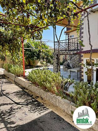 Şexsi tikilmis heyet evidir . Alt ust monalit betondur...7 otagdan ibaretdir . Orta temirli 6 sotun icinde.Otaglar genisdir. Evin icinde heyetin de hamam sanuzel var. Heyetde 10 t su baseyini var. Qaz su isig internet ...