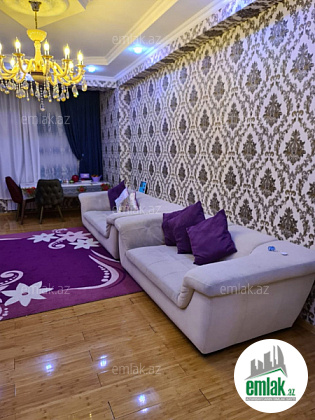 Binə Ticarət Mərkəzinə ayaqla 5 dəq məsafədə yerləşən, yeni tikilmiş binada,12/6-ci mertebesi, əla temirli, ümumi sahəsi 90 kv.m olan, 2 otaqdan 3 otaqa düzəldilmiş; 1 yataq otaqi, 1 detski otaq, 1 qonaq otaqi, geniş xholu, düzəlmə metbexti, 1s/q jakkuzi vanna, 2 balkonu, polu bambuk parket v.s olan mənzil 80% Əşyalı Son 97'000 manata satilir.!