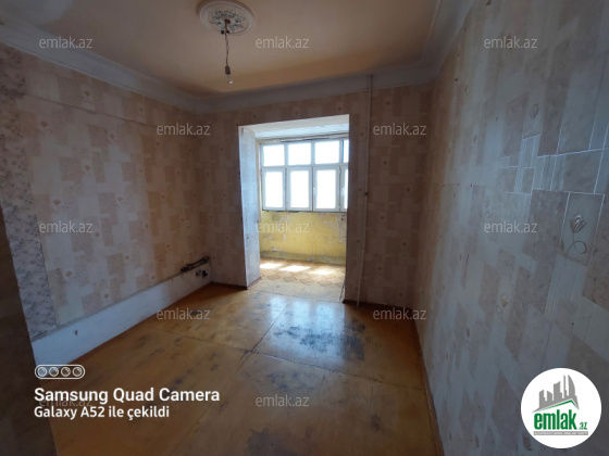 Binəqədi rayonu, Mirmahmud Kazımovski küçəsində yerləşən Leninqrad layihəli 9 mərtəbəli binanın 9-cu mərtəbəsində qanuni 3 otaqlı mənzil satışa çıxarılıb.