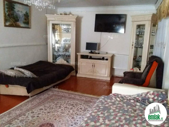 Şexsi tikilmis heyet evidir . Alt ust monalit betondur...7 otagdan ibaretdir . Orta temirli 6 sotun icinde.Otaglar genisdir. Evin icinde heyetin de hamam sanuzel var. Heyetde 10 t su baseyini var. Qaz su isig internet ...