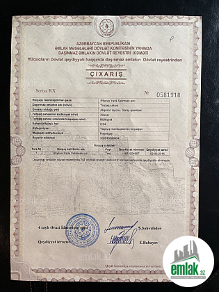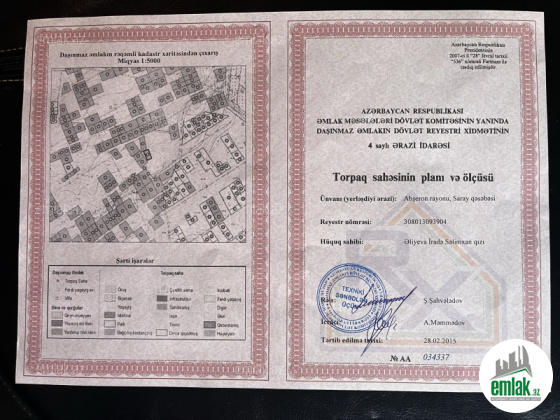 Torpaq sahesi ozumundur. Sənədi qaydasındadır. Çıxarışdır. Esas yoldan 500metr aralıdır. Mehellede butun kamunallar ve optik internet var. 5 daş hasara alınmışdır. Uzun Muddetdir baximsiz qaldıqı üçün qamışlıq yaranıb. Erazi 5 sotdur. Çıxarışda 4 sot qeyd olunub. Elave 1 sot hasara alınıb və kadastıra düşüb problemsizdir. Qeyd: qiymet 1 sota uygun qeyd olunub. Yalnız ciddi alıcılar elaqe saxlasın. Tecili satıldıqı üçün dəyərindən ucuz satıram.