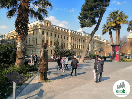 Şəhərin tam mərkəzində Səbail rayonu, Məmməd Əfəndiyev küçəsində yerləşən (Bakı şəhər İcra Hakimiyyəti, Axundov bağı və Ağ çiçəyim gül dükanı yaxınlığında) 4 geniş otaqlı 4 metr hündürlüyündə təmirsiz mənzil satılır. Arxitekturni binanın 1-ci mərtəbəsində yerləşir. Əsas küçə olan Məmməd Əfəndiyev küçəsinə doğru 7 pəncərəsi var. Ofis və obyekt kimi istifadə edilir və bu təyinatla istifadə olunması məqsədə uyğundur. Bina plana düşməyəcək. Fikri ciddi olmayan şəxslər narahat etməsin.