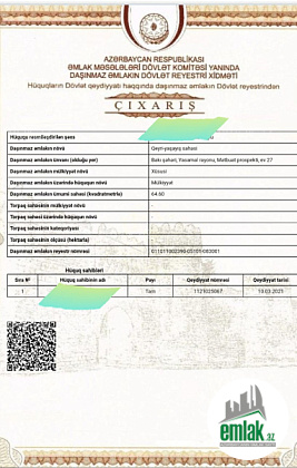 Satılır 2 otaqlı 64 m2 obyekt Bakı Dövlət Universiteti