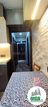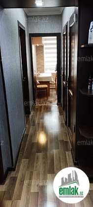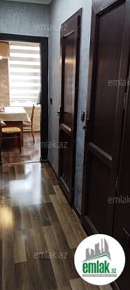 Hovsan Qesebesi R.Abdullayev kuchesinde yerleshen 5/1 mertebe. Modern temirli 3 otaqli menzil. Bezi eshyalari saxlayiriq ( Soyuducu, Paltaryuyan mashin, qaz peci ,aspirator, jaluzler ve s,) Genish balkonu ,