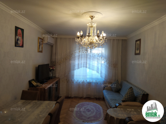 Mənzil 4 otaq+böyük mətbəx+balkon+zirzəmi və 5/1-di. Zirzəmi 50 kv.m və 2 metr hündürlükdədir və siqnalizasiya qoşulub. Həyətin girişinə şlaqbaum qoyulub, bloka damafon quraşdırılıb. Məhəlləyə və bloka kənar şəxslər daxil olmur. Blok həmişə təmiz olur, qonşular sakitdir. Binanın həyəti uşaqların oynaması üçün əlverişlidir. 5 dəqiqəlik piyada məsafədə 3 məktəb, avtobus dayanacaqları, iri və xırda marketlər var. Bina yol qırağı deyil. Yaxınlıqda bir çox özəl və dövlət uşaq baxçaları var. 20 ildən çoxdur mənzildə yaşıyırıq və mənzil xeyir iş üçün satılır.