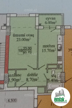Satılır 1 otaqlı 61 m2 yeni tikili 9 mkr