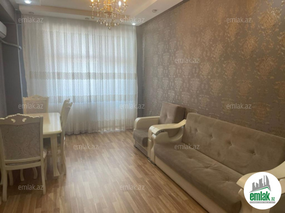 9 MKR-da yeni tikili bina 17/16 mərtəbə təmirli və əşyali 2 otaqli mənzil satilir ümumi səhəsi 94 kv.m.,2 sanitar qovşagi,isitmə kombi,qaz su işiq daimi.