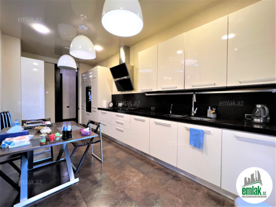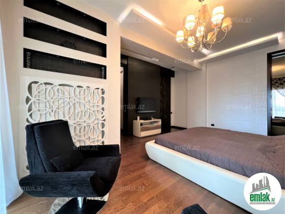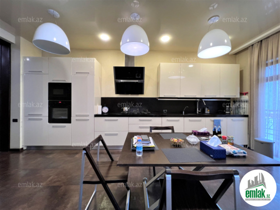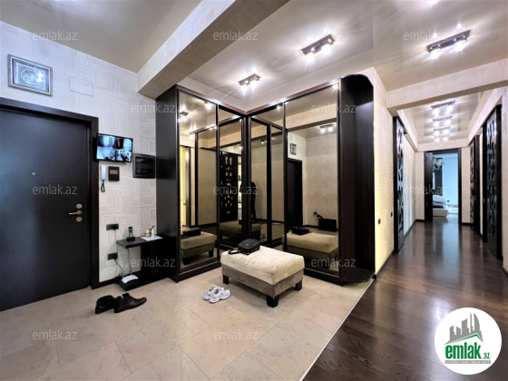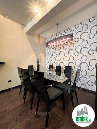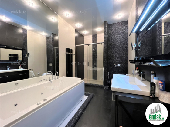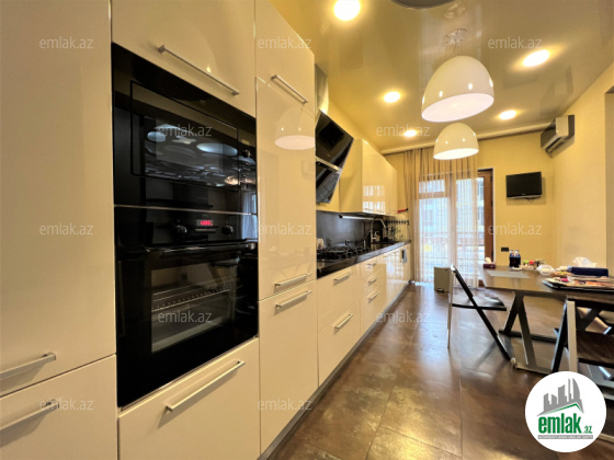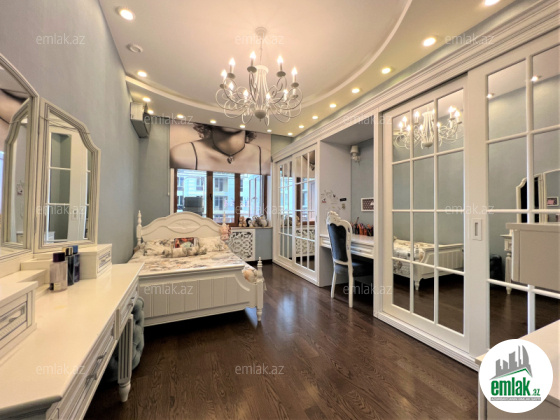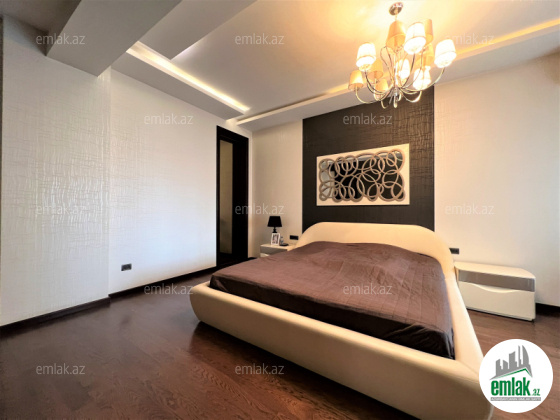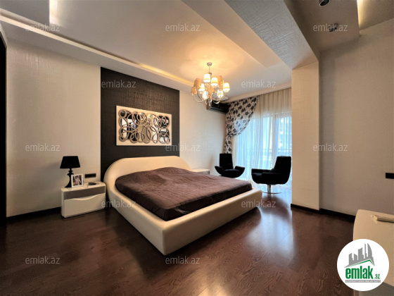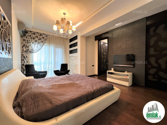 Ümumi sahəsi 215 kv.m., 3/12. 2 açıq eyvan, 2 s/q. Geniş qonağ otağı, 3 yataq dəsti. 3 plazma tv, KATV, internet, kombi istilik sistemi. Quraşdırılmış mətbəx mebeli və texnikası. Mühafizə olunan həyəti.